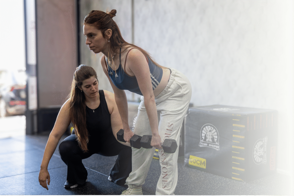 אימוני כוח ואירובי אחד על אחד בסטודיו מקצועי ומאובזר – תכנית מותאמת אישית לחיזוק הגוף, שיפור טכניקה ושימור מוטיבציה לאורך זמן. בתהליך נשים דגש גם על העצמה אישית , העלאת הביטחון העצמי והפיכת האימון לחוויה חיובית שמובילה להתמדה. מתאים למתחילים, מתקדמים, נוער, גיל שלישי, מתאמנים אחרי פציעה או נשים אחרי לידה – לכל מי שרוצה תהליך אמיתי שמותאם אליו.